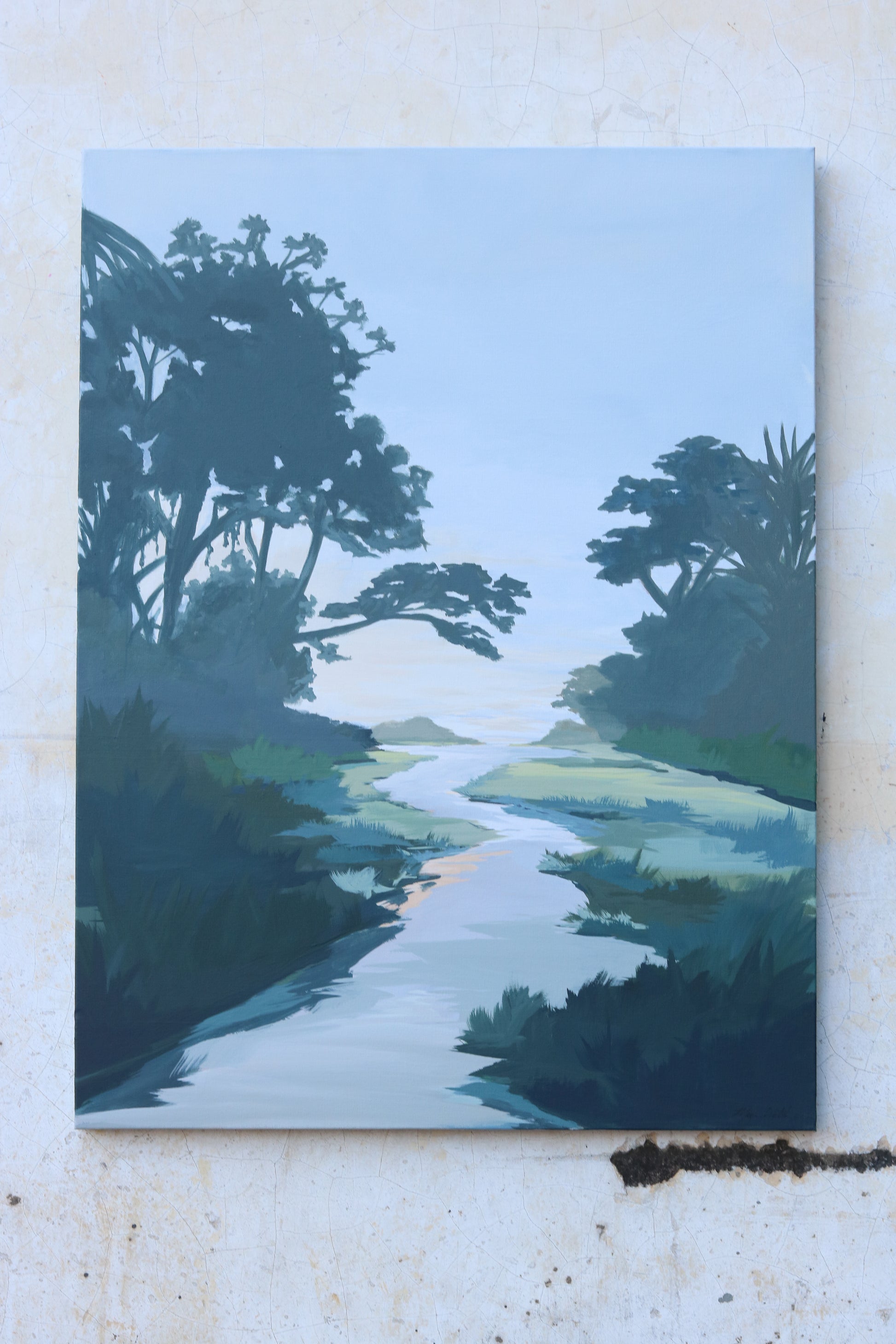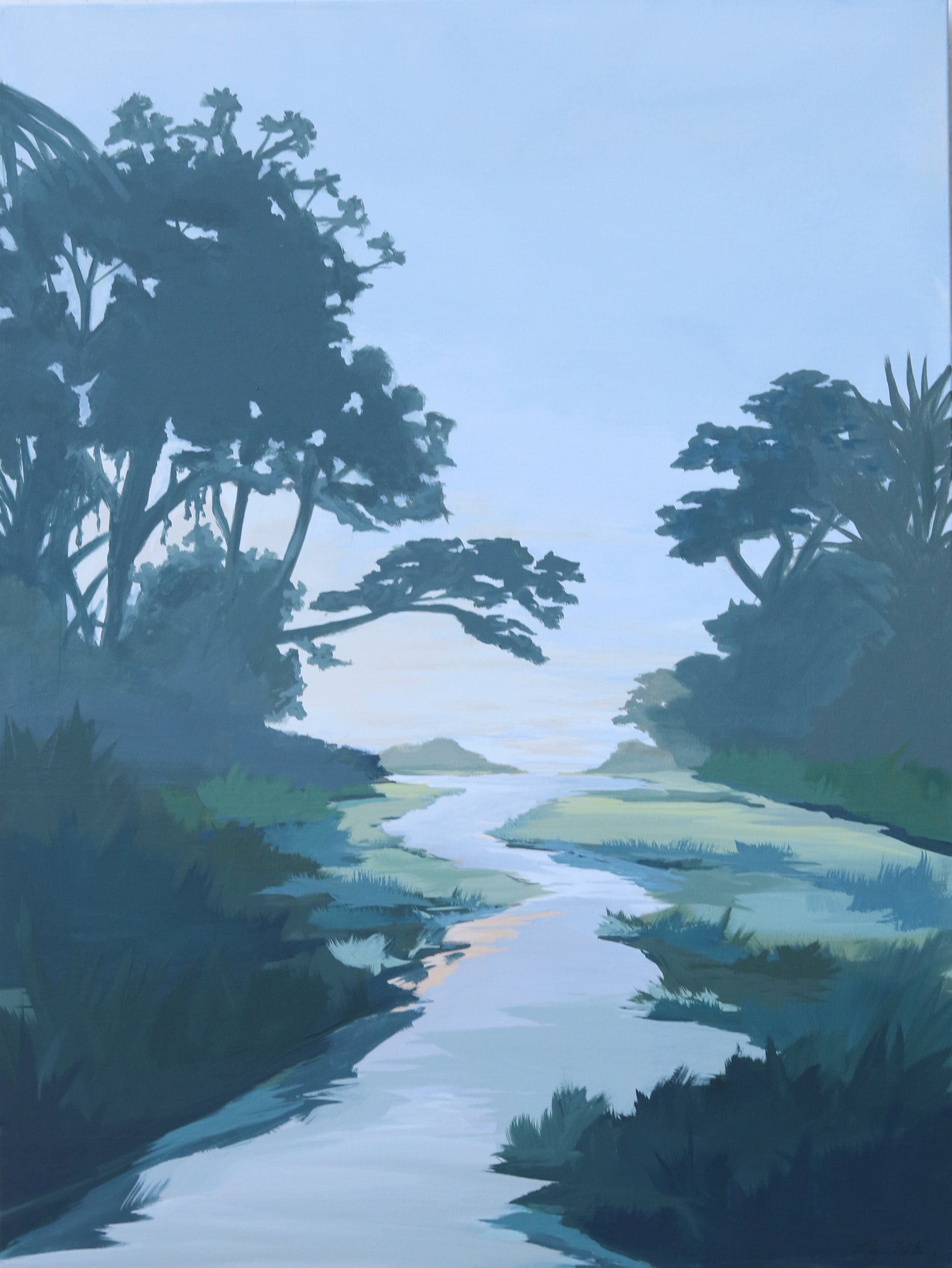 This pictured inspired by multiple coastal places draws the viewer down a creek out of the darkness and into light. A beautiful reminder to look to the light.